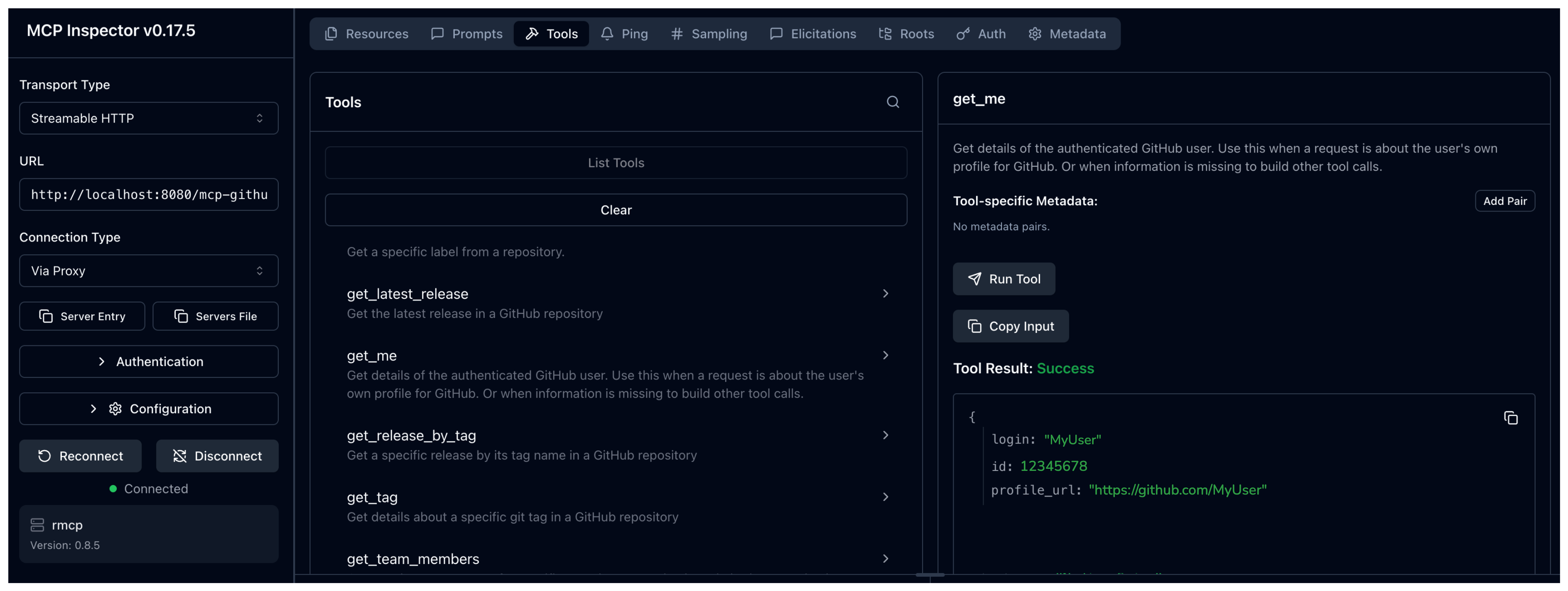 2. From your terminal, run the MCP Inspector command to open the MCP Inspector in your browser. If the MCP inspector tool does not open automatically, run mcp-inspector.